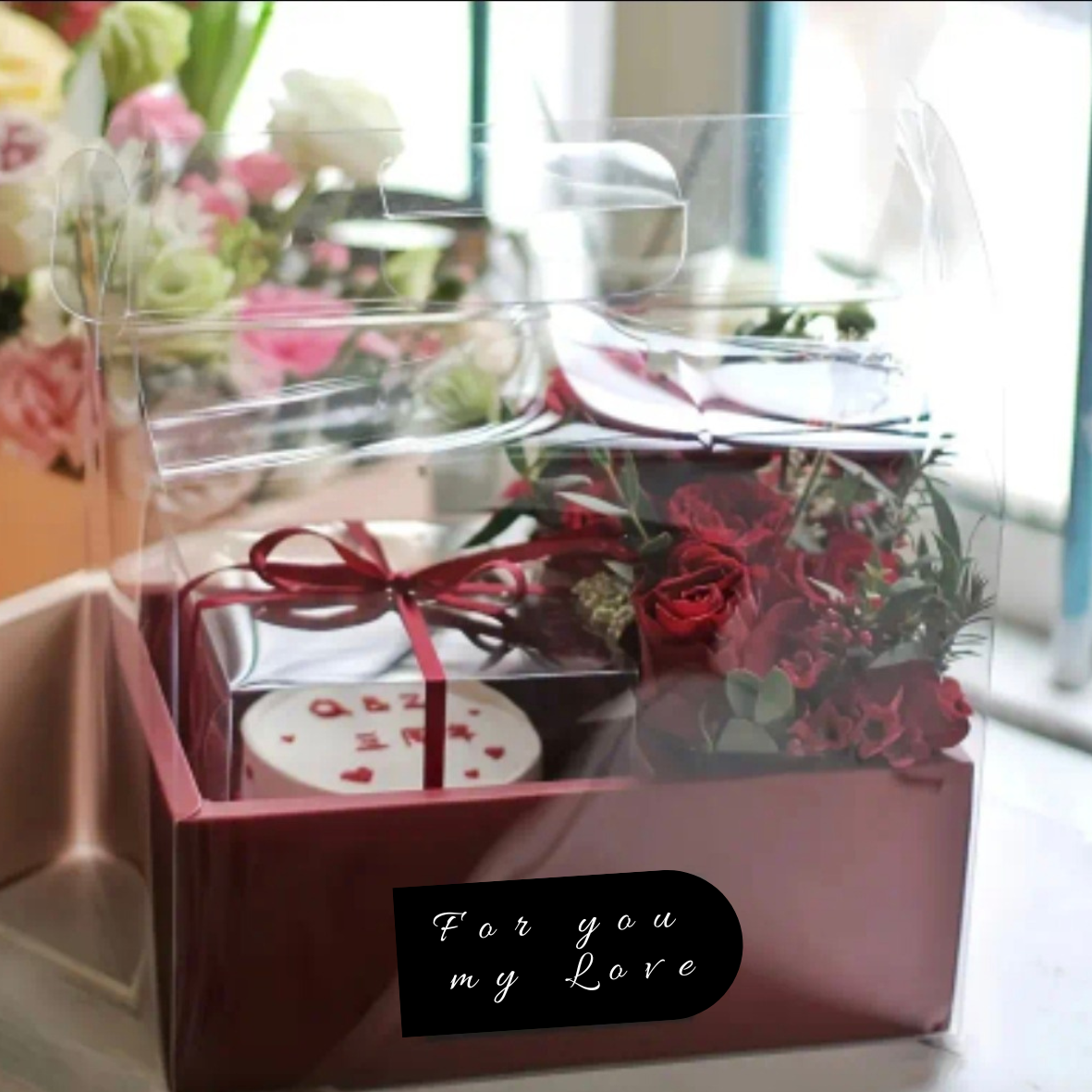 Inside the box, you have ample space to create personalized arrangements that reflect your vision and emotions. You can pair flowers with chocolates, candles, mini perfumes, love notes, or small accessories to create a curated gift experience. The clear top stays securely closed yet easy to open, preserving the arrangement while adding a refined touch to the overall presentation.