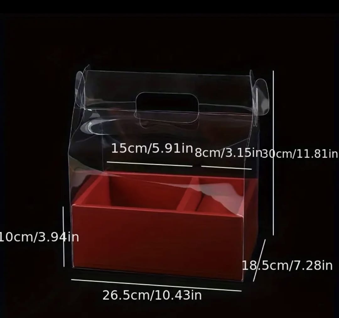 The materials used are not only aesthetically pleasing but also durable. The thick PVC maintains its clarity over time and resists deformation, while the sturdy cardboard base supports floral foams, bouquets, or heavier items like sweets and mini bottles. The ergonomic carry handle ensures it remains comfortable to hold even when filled.